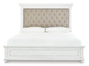 Details | B777B4: Includes queen upholstered headboard, panel footboard and rails, Made with solid wood, veneers and engineered wood, Distressed whitewash finish, Button tufted fabric upholstery, Nailhead trim, Foundation/box spring required, sold separately, Mattress available, sold separately, Assembly required, B777B1: Includes dresser and mirror, Made with solid wood, veneers and engineered wood, Distressed whitewash finish, Dark gray pewter-tone finished metal hardware, 7 smooth-gliding drawers, plus 2 small-scaled accessory drawers, Mirror attaches to back of dresser, Assembly required, B777-46: Made with solid wood, veneers and engineered wood, Distressed whitewash finish, Dark gray pewter-tone finished metal hardware, 7 smooth-gliding drawers, B777-93: Made with solid wood, veneers and engineered wood, Distressed whitewash finish, Dark gray pewter-tone finished metal hardware, 2 smooth-gliding drawers, plus 1 small-scale top accessory drawer, | |
