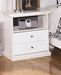Details | B139B43: Includes panel headboard/footboard and rails, Made with engineered wood (MDF/particleboard/plywood) and decorative laminate for the right balance of affordability and durability, Replicated solid white paint, Decorative laminate replicates natural or man-made material surfaces with consistent color, pattern and texture, Foundation/box spring required, sold separately, Mattress available, sold separately, Assembly required, B139B40: Includes dresser and mirror, Made of engineered wood (MDF/particleboard), Knobs with pewter-tone finish, Scalloped moulding, 6 smooth-operating drawers, Includes tipover restraint device, Mirror attaches to back of dresser; can also be mounted on wall horizontally or vertically, Safety is a top priority, clothing storage units are designed to meet the most current standard for stability, ASTM F 2057 (ASTM International), Drawers extend out to accommodate maximum access to drawer interior while maintaining safety, B139-46: Made of engineered wood (MDF/particleboard), Pewter-tone knobs, Scalloped moulding, 5 smooth-operating drawers, Small Space Solution, Includes tipover restraint device, Safety is a top priority, clothing storage units are designed to meet the most current standard for stability, ASTM F 2057 (ASTM International), Drawers extend out to accommodate maximum access to drawer interior while maintaining safety, B139-91: Made of engineered wood (MDF/particleboard), Pewter-tone knobs, 1 smooth-operating drawer, 1 storage cubby, Scalloped moulding, Small Space Solution, | |