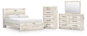Lawroy Queen Panel Storage Bed with Mirrored Dresser and Chest