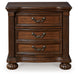 Details | B764B5: Includes poster headboard/footboard panels, rails and headboard posts, Made with hardwood solids, cherry veneer with MDF substrates, decorative cast resin and furniture grade plastic components , Cherry brown finish, Headboard with metallic accent filigree, Foundation/box spring required, sold separately, Mattress available, sold separately, Assembly required, B764B1: Includes dresser and mirror, Made with hardwood solids, cherry veneer with MDF substrates, decorative cast resin and furniture grade plastic components , Cherry brown finish, Decorative metal drawer pulls with dark bronze-tone finish, 7 drawers with fully finished interior, dovetail construction and ball-bearing side glides, Mirror attaches to back of dresser, B764-93: Made with hardwood solids, cherry veneer with MDF substrates, decorative cast resin and furniture grade plastic components, Cherry brown finish, Decorative metal drawer pulls with dark bronze-tone finish, 2 drawers with fully finished interior, dovetail construction and ball-bearing side glides, Pull-out tray behind bottom drawer, | |