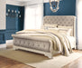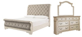 Details | B743B4: Made of wood and engineered wood, with cast resin components, Includes headboard, footboard and rails, Distressed, chipped white finish, Polyester upholstery with foam cushioned and button tufting, Foundation/box spring required, sold separately, Mattress available, sold separately, Assembly required, Bed is compatible with an adjustable base, B743B1: Made of veneers, wood and engineered wood, with cast resin components, Antiqued two-tone finish, 7 smooth-gliding drawers with dovetail construction, Dark bronze-tone hardware, Mirror attaches to back of dresser, Assembly required, Includes tipover restraint device, | |