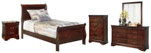 Alisdair Sleigh Bed With Mirrored Dresser, Chest And Nightstand