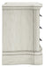 Details B980B2: Includes headboard, footboard and rails, Made with hardwood solids, spruce veneer, MDF substrates and cast resin components , Antiqued white painted finish, Polyester upholstery, Button tufting, Foundation/box spring required, sold separately, Mattress available, sold separately, Assembly required, B980B1: Includes dresser and mirror, Made with hardwood solids, spruce veneer, MDF substrates and cast resin components, Antiqued white painted finish, 9 drawers with fully finished interiors, French and English dovetail construction and ball-bearing side glides, Metal bar pulls with aged pewter-tone finish, Mirror attaches to back of dresser, B980-46: Made with hardwood solids, spruce veneer, MDF substrates and cast resin components, Antiqued white painted finish, 5 drawers with fully finished interiors, French and English dovetail construction and ball-bearing side glides, Metal bar pulls with aged pewter-tone finish, B980-93: Made with hardwood solids, spruce veneer, MDF substrates and cast resin components, Antiqued white painted finish, 3 drawers with fully finished interiors, French and English dovetail construction and ball-bearing side glides, Metal bar pulls with aged pewter-tone finish, 110V power supply with dual USB charging ports, Power cord included; UL Listed,