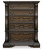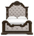 Details | B947B2: Includes upholstered panel headboard, upholstered panel footboard and panel rails, Made with hardwood solids, oak and ash swirl veneers, MDF substrates and cast resin components, Dark brown finish, Polyester upholstery with button tufting, Foundation/box spring required, sold separately, Mattress available, sold separately, Assembly required, B947B1: Includes dresser and mirror, Made with hardwood solids, oak and ash swirl veneers, MDF substrates and cast resin components, Dark brown finish, 6 smooth-gliding drawers with dovetail construction (top drawer felt lined), Drawer pulls with antiqued goldtone finish, Mirror attaches to back of dresser, B947-46: Made with hardwood solids, oak and ash swirl veneers, MDF substrates and cast resin components, Dark brown finish, 5 smooth-gliding drawers with dovetail construction (top drawer felt lined), Drawer pulls with antiqued goldtone finish, B947-93: Made with hardwood solids, oak and ash swirl veneers, MDF substrates and cast resin components, Dark brown finish, 2 smooth-gliding drawers with dovetail construction (top drawer felt lined), Pull-out tray behind bottom drawer, Drawer pulls with antiqued goldtone finish, 110V power supply with dual USB charging ports, Power cord included; UL Listed, | |
