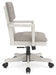 This home office desk chair is sure to impress when it’s time to study or work from home. With its antiqued white finish, cushioned seat and back covered in tufted light gray upholstery, modern farmhouse-style workstations have never been so fashionable. The adjustable seat allows you to find your sweet spot, while casters provide easy mobility. All that’s missing is you.
