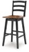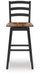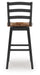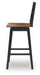 Details | Made with solid wood frame, Seat with butcher block veneer pattern in deep brown wood-tone finish, Frame with warm satin black finish, Contoured seat, 360-degree swivel, Footrest for added support, Assembly required | |