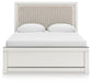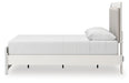 Details | Includes upholstered panel headboard, panel footboard, platform rails and roll slats , Made with engineered wood (MDF/particleboard/plywood) and decorative laminate for the right balance of affordability and durability , Matte white finish with subtle replicated wood grain , Decorative laminate replicates natural or man-made material surfaces with consistent color, pattern and texture , Polyester upholstery , Chrome-tone and glitter accents, Bed does not require additional foundation/box spring; accommodates most zero clearance adjustable bases , Mattress available, sold separately, Minor assembly required | |