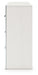 Details | Made with engineered wood (MDF/particleboard/plywood) and decorative laminate for the right balance of affordability and durability, Matte white finish with subtle replicated wood grain, Decorative laminate replicates natural or man-made material surfaces with consistent color, pattern and texture, Chrome-tone accents, Large-scale chrome-tone handles with faceted details, 6 smooth-gliding drawers, Drawer interiors are lined with a faux linen laminate for a clean, finished look, Safety is a top priority, clothing storage units are designed to meet the most current standard for stability, ASTM F 2057 (ASTM International), Drawers extend out to accommodate maximum access to drawer interior while maintaining safety, Minor assembly required | |